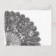 Black and white illustration of a woman's fan from the eighteenth century. It features feathers and flowers