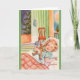 Retro / Vintage Finnish Christmas greeting card. Sweet little girl asleep with her stuffed bear! Rauhallista Joulua! Peaceful Christmas!