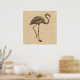Fun square poster design features brown tinted flamingo bird illustration on light tan "burlap" background
