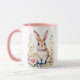 Cute sweet vintage old fashioned bunny rabbit with pink flowers done in a watercolor style by ai. Personalised Easter Mug.