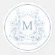 Add a touch of timeless sophistication to your correspondence and gifts with this elegant vintage blue floral monogram sticker. Designed with refined artistry, this classic emblem features an ornate shield monogram framed by delicate hand-drawn florals in soft powder blue. Beneath the crest, your family name is elegantly displayed, creating a graceful balance of heritage and style. Perfect for sealing envelopes, adorning wedding favors, labeling gifts, or elevating stationery, these personalized stickers bring an air of luxury and old-world charm to every detail.
