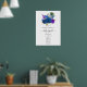 Elegant vintage navy and royal blue roses welcome poster with accents of purple and gold in a baroque peacock theme customisable to your event specifics.