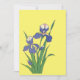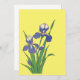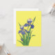 Vintage illustration floral design featuring blooming purple iris garden flowers on a bright yellow background. Great design for Easter or to celebrate a beautiful spring day.