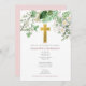 Vintage Floral Religious Gold Cross Baptism Invitation