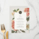 Introduce your wedding menu with timeless elegance. This menu from the Cora Collection features vintage florals in soft salmon, warm terracotta, and rich hunter green, beautifully paired with a modern monogram. A perfect blend of classic and contemporary, it sets the tone for an unforgettable celebration.