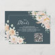 QR code wedding detail card inserts for your spring or summer wedding with elegant blush, cream and white watercolor flowers, pastel greenery and a navy blue background. Use these cards to direct your guest to your wedding website for more details about your accommodations, directions or to RSVP online.