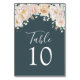 Vintage style watercolor floral table number cards with cream, white, and blush vintage watercolor flowers, pastel greenery and a navy blue background. Customize these cards with your table numbers for a special addition to your wedding tables. Also suitable for birthdays and anniversary parties.