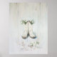 Vintage Floral White Cowgirl Boots Illustration Poster