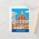 This beautiful Vintage Florence Travel Poster Postcard captures the artistic soul of the Tuscan capital, featuring the magnificent Duomo (Brunelleschi's Dome) and Giotto's Campanile rising above the historic terracotta rooftops.