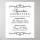 Display your custom drink menu in style with this vintage-inspired "Signature Cocktails" sign featuring elegant ornamental flourish dividers. The Bride's Choice and Groom's Choice layout highlights two custom cocktails with names and ingredients in refined black and white typography. A timeless accent for any wedding bar or cocktail hour. All text is fully customisable.