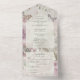 Presenting this enchanting All-in-One wedding invitation, featuring a vintage floral garden background in soft, natural tones. This captivating invitation will transport your guests to a world of romance and beauty, setting the perfect tone for your special day surrounded by nature's elegance. The All-in-One wedding invitations are both beautiful and practical by combining the wedding invitation with an easy to remove perforated RSVP postcard. They are also quick and easy to prepare for mailing. Simply address the invitation, fold the back flap and seal with the included clear stickers. Once your guests receive the pre-addressed invitation they simply tear off the perforated RSVP card and drop it in the mail.