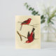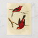 Beautiful red or Vermillion Flycatchers illustrated on a cream background. One bird is perched and the other looks ready to take flight. Brilliant red colour and intricate detail are seen in this painting by artist and American ornithologist John Cassin. Painted during the in the Victorian Era, 1862