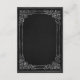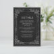 This elegant wedding details enclosure card features an ornate vintage silver frame on a distressed off-black background in imitation of an antique book cover. The frame design is repeated on the back of the card.