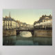 Vintage France view of Nantes, capital of the Pays de la Loire region, with convergence of Loire & Erdre rivers & vintage steam train on bridge. antique France 19th century photochrom print.