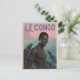 Beautifully illustrated antique aviation style travel poster featuring a man amongst a jungle background. Colours include light purples, aqua blues and dark palm leaves.
