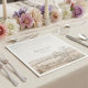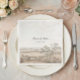 Elegant personalized wedding napkins featuring a vintage French country landscape design. Customize with your names and wedding date to perfectly match your invitation suite, guest book and day-of stationery. A timeless and romantic detail for wedding receptions, bridal showers and engagement parties.