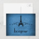Grungy yet elegant Vintage French Flourish Postcard in royal blue featuring an Eiffel Tower design embellished with chic swirls and dots and a faux paper textured background. This unique Parisian themed postcard is perfect for sending off a quick hello to anyone with a dash of funky French flair! Easy to customise, simply add the personalised text of your choosing in the text field provided. Click on the "Customise It" button to find additional personalisation options.