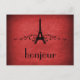Grungy yet elegant Vintage French Flourish Postcard in red featuring an Eiffel Tower design embellished with chic swirls and dots and a faux paper textured background. This unique Parisian themed postcard is perfect for sending off a quick hello to anyone with a dash of funky French flair! Easy to customise, simply add the personalised text of your choosing in the text field provided. Click on the "Customise It" button to find additional personalisation options.