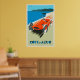 This stylish poster shows a vintage red car on a scenic drive in the south of France overlooking the French riviera.