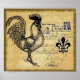 Beautiful visual texture to this stylish vintage French rooster image. Black graphics of french writing, rooster, fleur-de-lis, and postage stamp atop a burlap background.