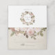 Elegant acrylic french rose floral place card or table card design features a top border of vintage french roses with green and brown foliage. Space provided for guest name and table number. Cards reverse to reveal a matching floral wreath with your names inside and your wedding date beneath. Designed to match our Vintage French Roses floral wedding and event collection.