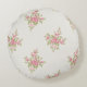 A lovely vintage french women's clothing advertisement with small pink roses graces the front of this round cotton pillow, and a delicately pretty pink floral pattern with small white polka dots is displayed on the reverse. Wonderful for shabby chic and vintage french country fans alike!
