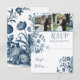 A graceful vintage French toile illustration featuring a floral arrangement in elegant shades of blue. The design includes a variety of flowers, from large open blooms to delicate buds. Arranged in a circular composition, it exudes timeless elegance and serenity, reminiscent of traditional porcelain artistry. Perfect for framing wedding photos, invitations, or decor, this design adds a romantic and sophisticated touch to any wedding aesthetic.
