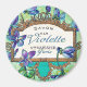 Pretty french violet perfume label. Featuring purple and blue violets, a gold scroll frame and in colours of purple, green, blue, gold and turquoise.