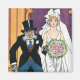 Vintage illustration funny humourous wedding image featuring an older gentleman marrying a young woman in this May December romance. A silly love affair! Wedding humour, LOL!