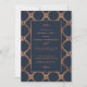 The design features a stylish geometric design background in navy and gold with a decorative border frame and is finished with matching editable wording.