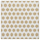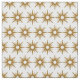 This mid-century modern pattern features a geometric starburst pattern in gold and white.