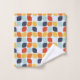 This mid-century modern pattern features orange, teal and teal geometric shapes.