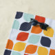 This mid-century modern pattern features orange, teal and teal geometric shapes.