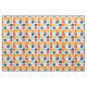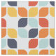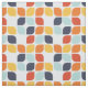 This mid-century modern pattern features orange, teal and teal geometric shapes.