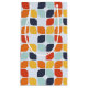 This mid-century modern pattern features orange, teal and teal geometric shapes.
