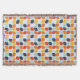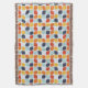 This mid-century modern pattern features orange, teal and teal geometric shapes.