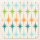 Vintage. Geometrics. Starbursts. If you love any of those words, these retro Vintage Geometric Starbursts Square Coasters are for you. This mid century modern design features a cream background with rows of turquoise, lime green, orange, and teal starbursts. This mod design pairs beautifully with Strange Little Onion’s Retro Atomic Mobile Pattern and Retro Grid and Starburst products. Take back the kitschy with this unbelievably fun pattern. Go ahead; reach for the starbursts!