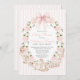 Welcome your little bundle of joy with this darling girl-themed baby shower invitation, perfect for celebrating a baby girl! Featuring a charming hand-drawn pink girl baby toys with a coquette pink bow, soft pastel florals, this invitation brings a vintage cottage woodland touch to your special event.