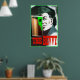 This distinctive alcohol themed poster is based on a vintage temperance movement poster warning against the dangers of drinking too much alcohol. The wording reads, 'The Bevvy' (Scottish for drink). Above is an illustration of a deathly pale blue eyed man in a Forties style hat who is clearly boozing too much. You can see part of his skull through the pint glass of lager in the foreground. The warning is clear - booze too much ... and you die! The original vintage poster is on view at the People's Palace museum in Glasgow, Scotland. I've added a green border to match the ghoulish skull but you can easily change this to suit simply by using the customize border.