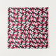 Bold geometric shapes create a glitchy retro pattern.