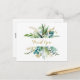 This vintage gold and green eucalyptus thank you postcard is perfect for a simple wedding. The design features hand-painted watercolor green, gold, and blue leaves and flowers neatly arranged into bouquets and geometric elegant frames.