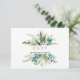 This vintage gold and green eucalyptus wedding rsvp card is perfect for a destination wedding. The design features hand-painted watercolor green, gold, and blue leaves and flowers neatly arranged into bouquets and geometric elegant frames.