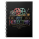 Take notes in cinematic style with this elegant Art Director notebook, showcasing a detailed vintage gold emblem of film reels, a classic camera, and artistic tools on a sleek black background. Perfect for filmmakers, directors, cinematographers, and creative professionals, this notebook is ideal for jotting down ideas, sketching concepts, or planning productions. A stylish and functional gift for anyone in the film industry or passionate about visual storytelling.