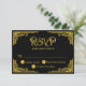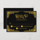 A matching RSVP card designed in the Cinematic Vintage style and gold and black with subtle filmgrain/dust overlay. Completes your editorial wedding suite with a cohesive, nostalgic look. Fully editable. The card has rsvp circles,a decorative frame and vintage font in faux gold.