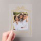 Celebrate the holiday season with this acrylic Christmas card, featuring your family’s photo beautifully framed by a festive gold bow and ribbon on a frosted or transparent acrylic background. The elegant "Merry Christmas" greeting is written in a charming gold handwritten script, adding a personal touch to your holiday greetings. Customise this card with your family name below the greeting for a unique design. Perfect for sharing your family’s warm wishes, this personalised Christmas photo card will make your holiday greetings unforgettable.