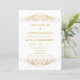 © Socialite Designs. Celebrate love and commitment in timeless elegance with this customisable invitation. Featuring vintage faux gold foil flourish decorations at the top and bottom, this design frames your event details beautifully. The back showcases a sophisticated gold foil-look damask pattern, adding a regal touch to your special occasion. Ideal for commitment ceremonies, vow renewals, and intimate weddings, this invitation sets the perfect tone for a cherished celebration.