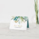 This vintage gold & green eucalyptus thank you card is perfect for a destination wedding. The design features hand-painted watercolor green, gold, and blue leaves and flowers neatly arranged into bouquets and geometric elegant frames.