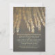 Gold foil effect willow tree branches and glamour vintage string lights rehearsal dinner invitations.