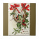 A large wishbone is tied to a golden horseshoe with red ribbons for good luck. There is holly and berries with a few leaves of mistletoe in the background. Greeting: A Merry Christmas. Image of Vintage Christmas Postcard by Ellen Clapsaddle with a custom bronze yellow border.