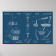 Schematic drawings and annotations on a poster for lovely golf-themed decor.
